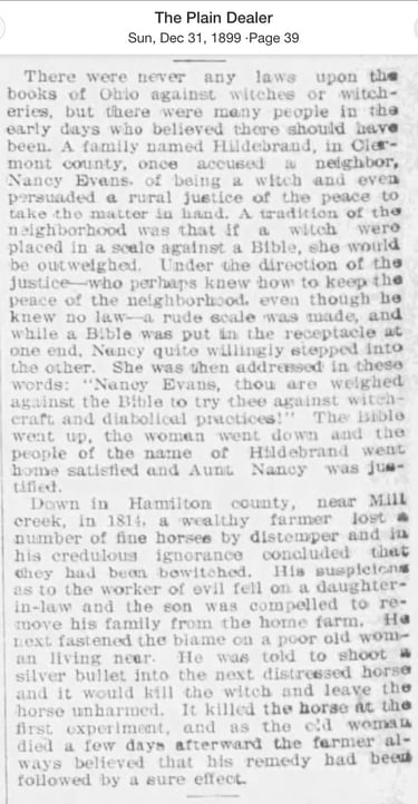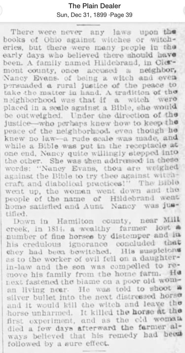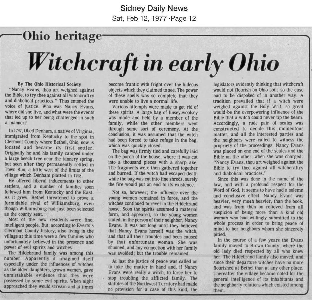 Ohio’s (Surprisingly Peaceful) Witch Trial: Nancy Evans of Bethel, 1805